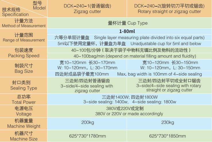DCK-240-1/DCK240-2 平三邊封/四邊封顆粒包裝機(jī)